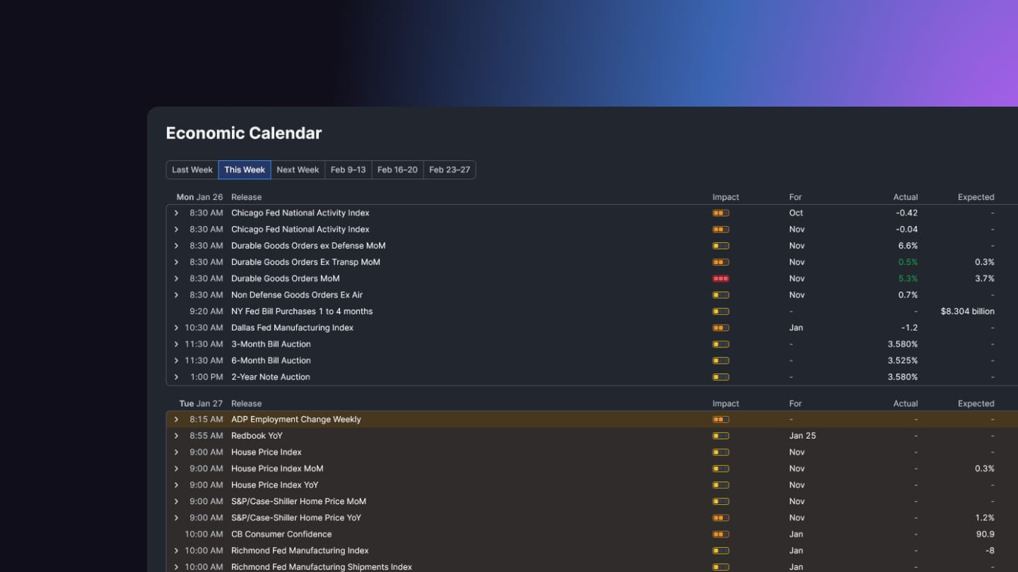This makes it easy to correlate macro trends with market movements and improve your trading strategies.