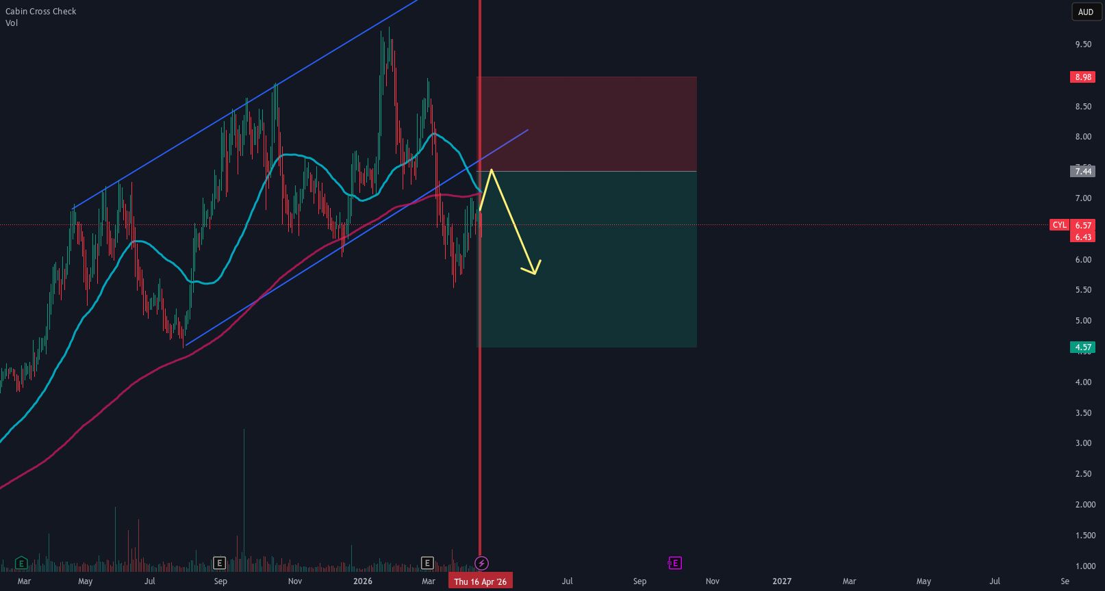 With a death cross in place and an uptrend line broken, I would expect a rally to the 7.43 area before seeing the price drop to lower levels, unless they hit a huge nugget of gold in a plutonian mine, which is unlikely since that mine was destroyed long ago. It’s not financial advice, so it’s not.