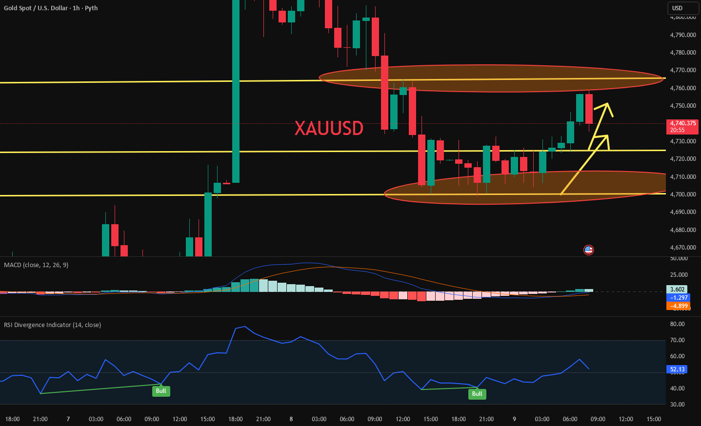 Currently, we look to enter buy positions again at 4705, with a stop loss below 4700. Aggressive traders can enter buy positions directly at 4730. If it breaks below 4700, a continuation of the trend into the US session is not bad. If it drops below 4700, short positions may be added moderately in the short term. I will provide timely notifications based on signals during the trading session. The support levels below are 4700-4630-50, which are good and healthy positions for long positions. As happened yesterday, if the continuation is weak, reduce positions accordingly. Since it is not a one-sided trend, you can still make short-term compound profits by operating in the range. Market conditions change quickly. Follow my live trading to get timely updates on specific market movements!