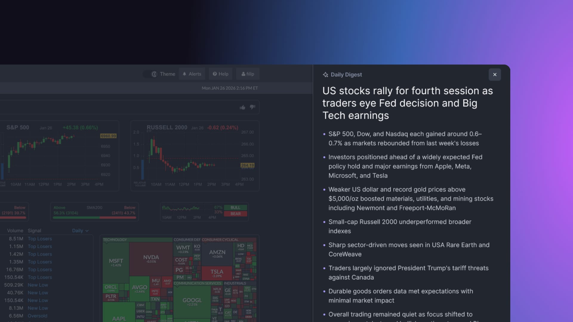 - Understand every big step in less than 3 seconds with quick updates, only on Finviz.