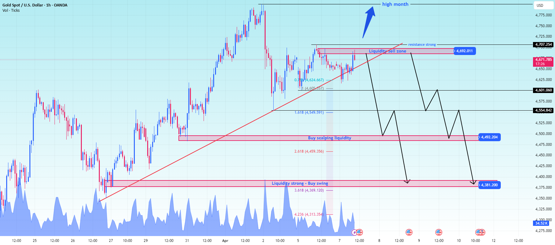 Near-term resistance/liquidity zone: 4692-4707
