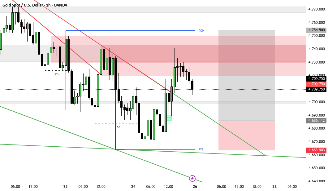 We now expect the price to move higher and sweep liquidity around 4689 on the 1 hour time frame, followed by a reaction from the hourly order block (4683 – 4680).